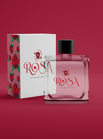 The final brand identity came to life through a series of mock-ups, showcasing ROSA across packaging, logo applications, and promotional visuals. These mock-ups offered a glimpse into the world of ROSA, giving the audience a sensory preview of how the brand could live in their hands. The result was not just a design, but an invitation to feel empowered, elegant, and unforgettable through fragrance.